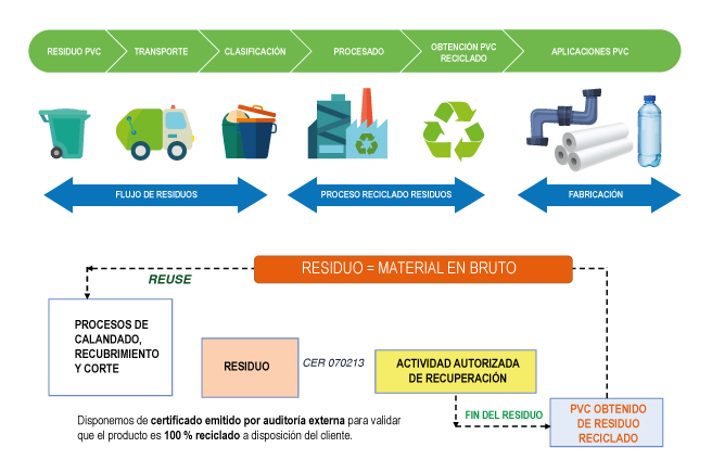 ● El PVC reciclado mantiene las mismas propiedades que PVC normal.
